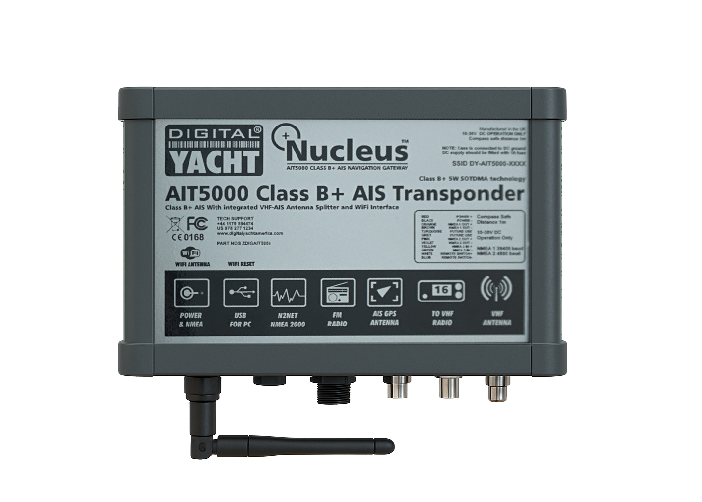Door een iKonvert NMEA 2000 – 0183 converter toe te voegen, kan de AIT5000 alle gegevens op een NMEA 2000-netwerk via wifi verzenden. Navigatieapplicaties en -software zijn niet compatibel met NMEA 2000-gegevens zonder voorafgaande conversie.Onze nieuwste Class B SOTDMA technologie is nu SPAIS-compatibel met extra berichten voor satellietontvangst van AIS-transmissies van deze transponder. SPAIS is de gepatenteerde en gespecialiseerde technologie van Digital Yacht die de berichten van de transponder optimaliseert met satellietfunctionaliteit voor lange afstanden.