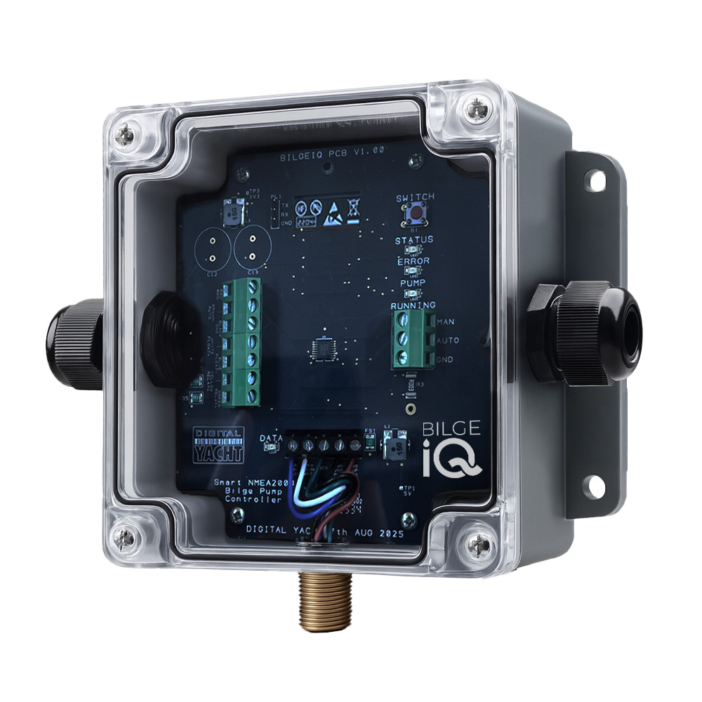 Winnaar van de DAME Environmental Award (de meest prestigieuze prijs in de maritieme industrie) is Bilge iQ een slimme lenspomp monitor die een standaard lenspomp verandert in een volledig verbonden, intelligent veiligheidssysteem. Door NMEA 2000 en WiFi integratie, maakt Bilge iQ het mogelijk om bilgepomp-prestaties in real time te monitoren, te bedienen en te analyseren. Zo krijg je ongekende zichtbaarheid op één van de meest kritieke systemen aan boord.