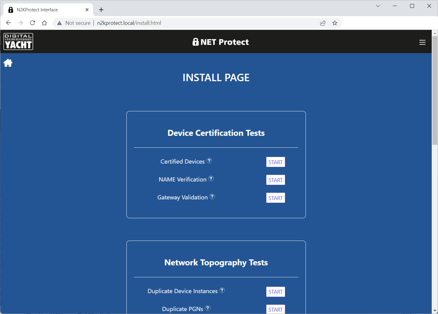 Gecertificeerde Devices – Vraagt alle devices op en controleert of ze in de NMEA 2000 Certified Product database staan. Niet-gecertificeerde devices worden gemarkeerd omdat ze een mogelijke oorzaak kunnen zijn van netwerkfouten en interoperabiliteitsproblemen. Ze kunnen wel blijven werken, maar extra controle wordt aangeraden.
