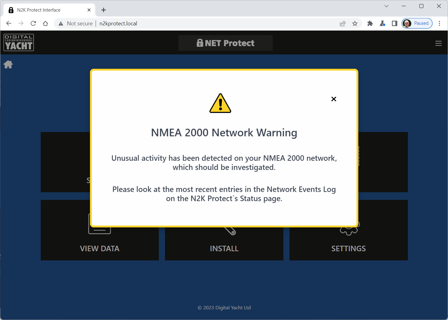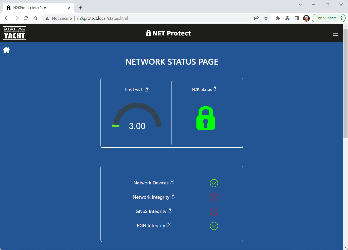 Daarna schakelt NET Protect over naar 24/7 monitor mode en zal het hoorbare waarschuwingen geven en events opslaan in een log voor analyse. In combinatie met een Digital Yacht 4GX of 5GX systeem kunnen optioneel SMS alerts worden ingeschakeld voor remote monitoring.NET Protect monitort continu je NMEA 2000 netwerk.