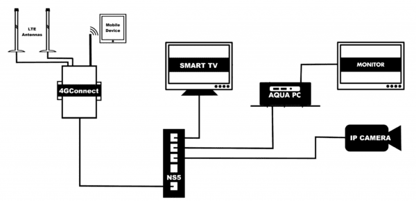 De installatie kan niet eenvoudiger: sluit gewoon een van de RJ45-aansluitingen van de NS8 aan op een LAN-aansluiting op onze Nexux Connect of 4G Xtream-routers met behulp van een normale netwerkkabel en sluit de NS8 rechtstreeks aan op de 12 V, 24 V of 48 V DC-voeding van de boot. Onze 4G-router blijft IP-adressen toewijzen aan elk apparaat dat op de NS8 is aangesloten (via DHCP) en u kunt de status van alle Ethernet-verbindingen direct zien aan de knipperende gele en groene LED’s op elk van de poorten van de NS8.