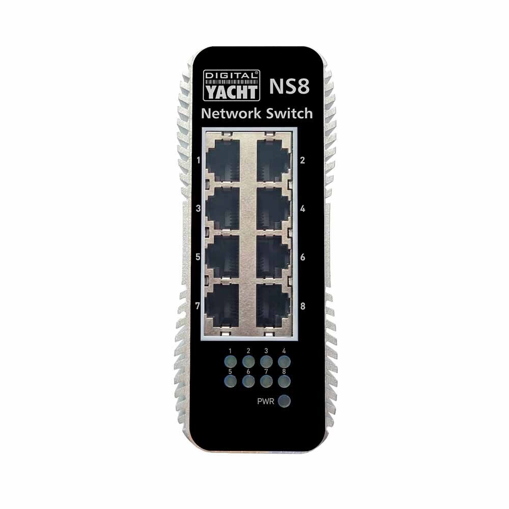 Onze NS8 netwerkswitch voor boten biedt een eenvoudige en robuuste oplossing om het aantal bekabelde Ethernet-aansluitingen op het vaartuig uit te breiden. De NS8 is ontworpen voor gebruik met een 9V tot 48V DC-voeding, heeft een dubbel redundante voeding, een DIN-railbevestiging en acht RJ45 10/100/1000 Ethernet-poorten, waardoor u het Ethernet-netwerk van uw boot op betrouwbare wijze kunt uitbreiden.