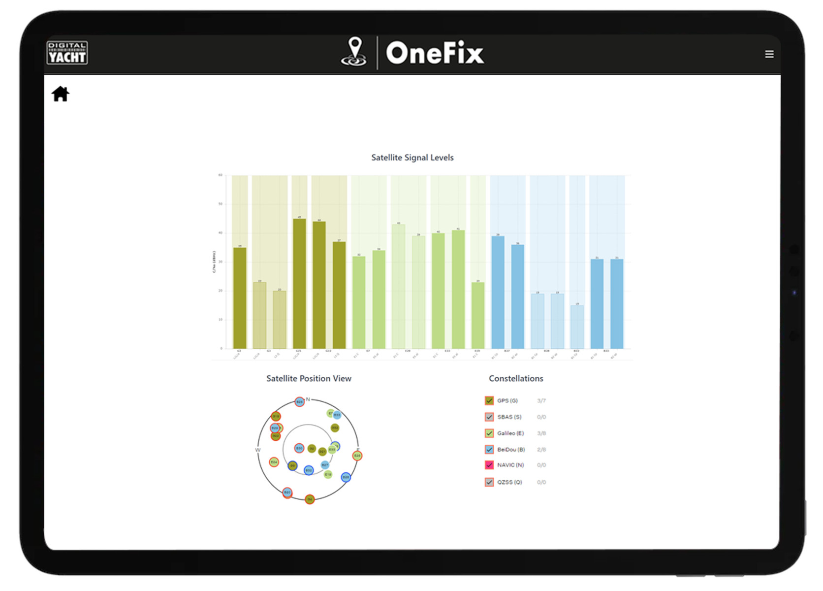 Een andere belangrijke ontwikkeling van het afgelopen jaar is de verdere uitrol van multi-band GNSS. Signalen van sommige netwerken worden nu uitgezonden op zowel L1- als L5-banden. Met een geavanceerde dual-band GNSS profiteer je van betere nauwkeurigheid en een betrouwbaardere fix onder lastige omstandigheden. Veel traditionele GPS’en, MFD’s en plotters gebruiken alleen L1-frequenties en kunnen dus niet profiteren van deze nieuwste technologie.OneFix bevat een dual-band (L1 en L5) processor en werkt met GPS, Galileo, NavIC en Beidou om een positie-fix te berekenen. GLONASS (het Russische systeem) is als optie beschikbaar met een tweede actieve antenne, wat het tot een zeer geavanceerd systeem maakt.