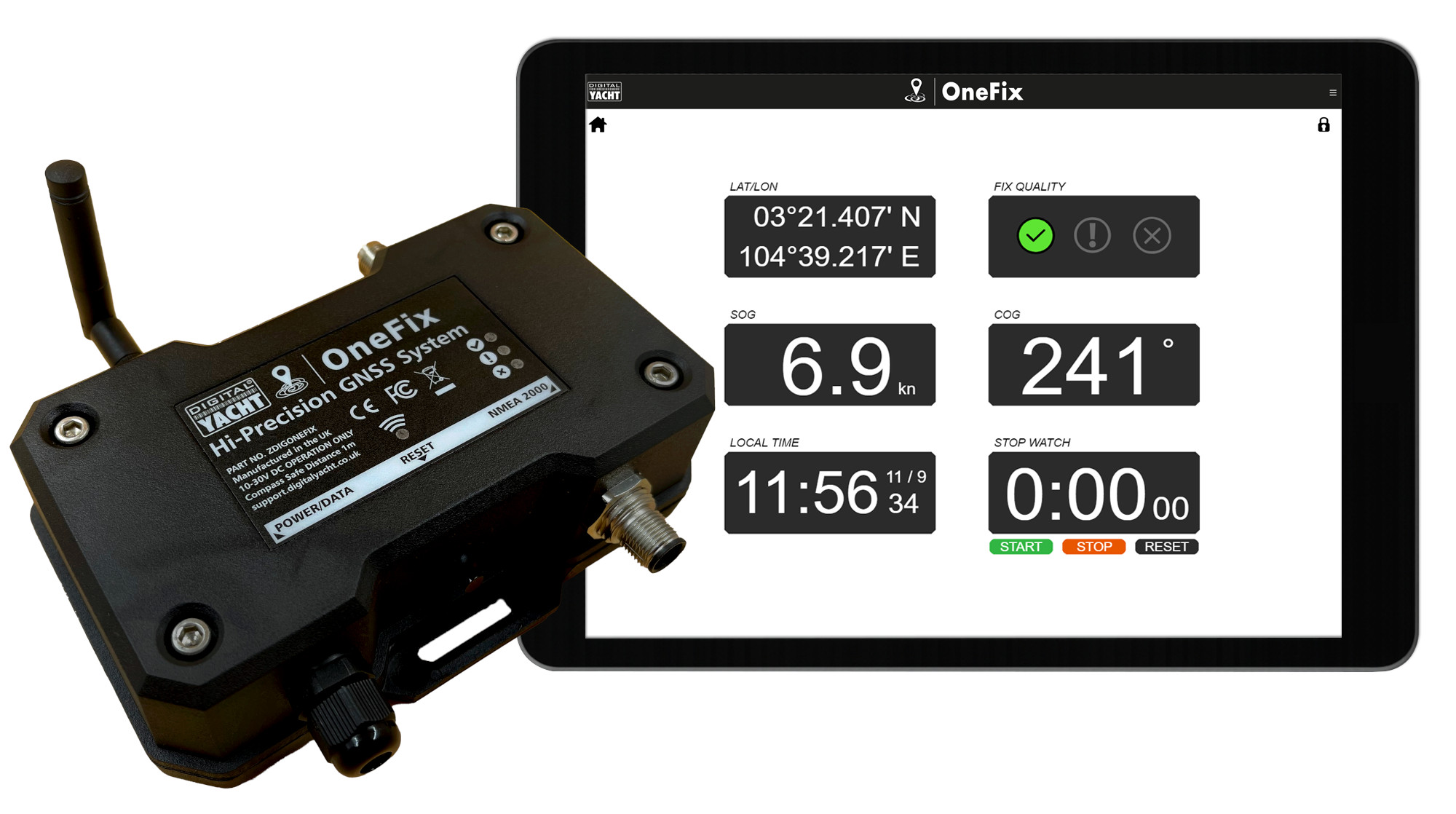 OneFix is Digital Yacht’s nieuw geïntroduceerde high-performance GNSS Positiesensor voor boten. Door gebruik te maken van meerdere satellietnetwerken en nieuwe dual-band technologie biedt hij supernauwkeurige positionering (typisch beter dan 1 meter) en — heel belangrijk — robuuste anti-spoofing algoritmes voor betrouwbaardere navigatie. Hij kan op vrijwel elk navigatiesysteem worden aangesloten (ook oudere/legacy systemen), én verbinden met iPads en tablets en de nieuwste NMEA 2000-compatibele multi-function displays. OneFix belooft zeer nauwkeurige en betrouwbaardere navigatie voor elke watersporter.