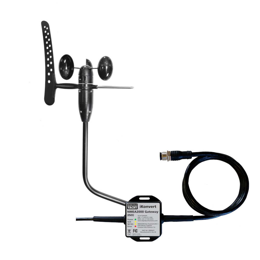 De NMEA 2000-versie van de WND100 wordt geleverd met de Digital Yacht iKonvert NMEA 2000 gateway. Daardoor kun je NMEA 2000 eenvoudig en flexibel installeren, zonder onhandige dropkabels. Je legt een dunne kabel van 20 m van de WND100 naar het dichtstbijzijnde punt op de NMEA 2000-backbone, waarna de iKonvert daarop kan worden aangesloten.